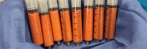 برداشت چربی (Harvesting): چربی از نواحی که ذخیره دارند (مانند شکم، ران ها یا پهلوها) از طریق روش لیپوساکشن و با استفاده از کانولاهای (لوله های خاص) مخصوص و با کمترین Trauma (عوارض) ممکن برداشته میشود.